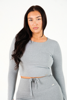 Cropped Built In Bra Long Sleeve Top Grey Marl