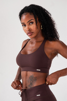 A returning favourite but in a brand new colour for our amazing new Spring 2025 Espresso collection, introducing our incredible Cross Back Sports Bra in Espresso. Perfect for a Medium/High Impact workout with a super support band and a scoop neck for more coverage and made from the same material as our Tierra bra, for that super comfortable and soft feel.