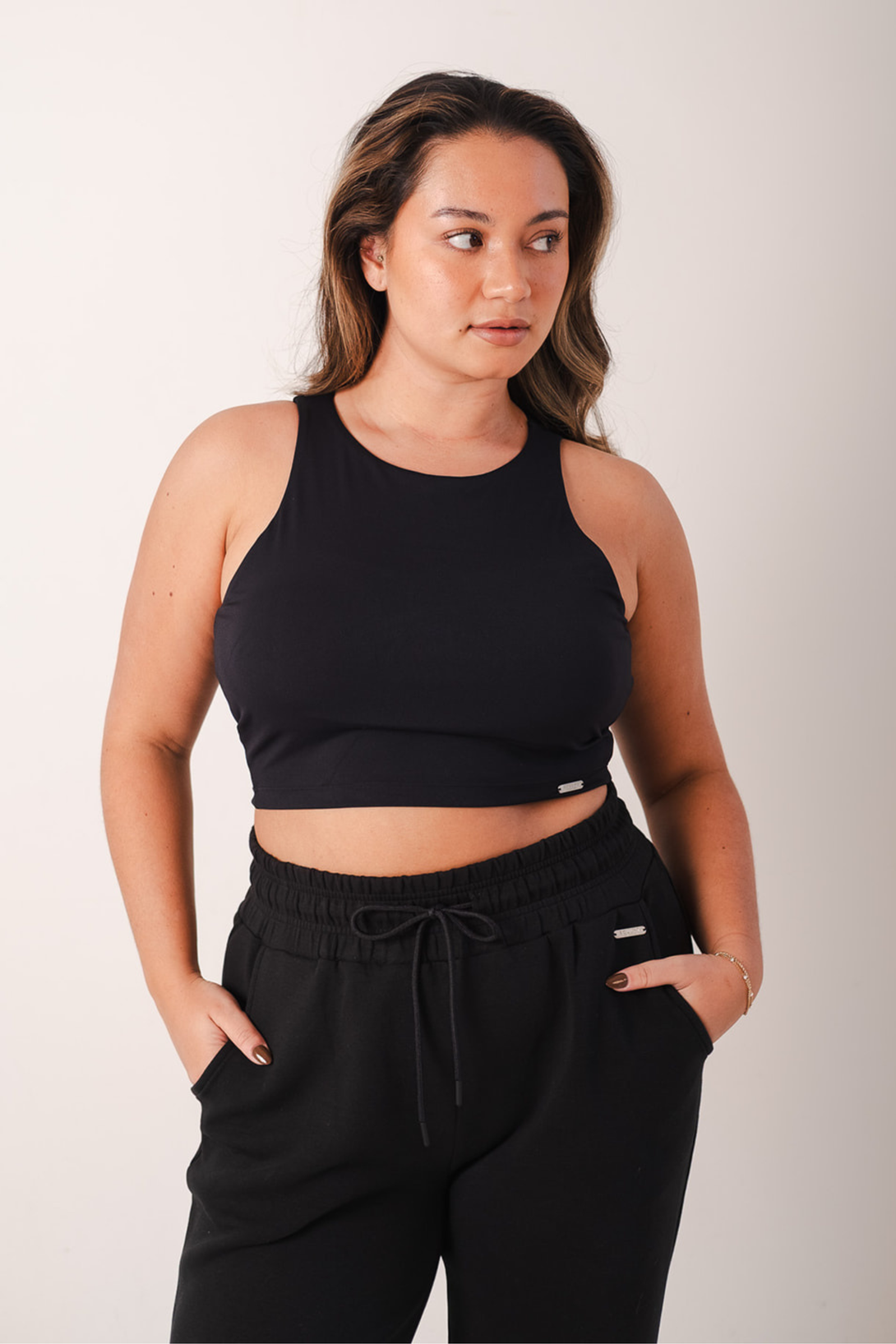 Signature Racer Crop Built In Bra Top Black