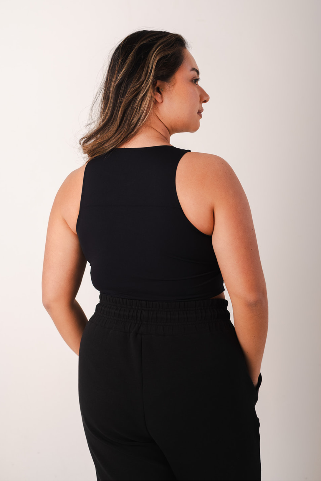 Looking for that gym top that covers up but is breathable, lightweight, stylish and with a built in bra? Look no further. Returning in a brand new colour, our new gorgeous Black racer top for SS24 features a fitted design with our four-way stretch material providing breathability which is unrestrictive and flexible - ideal for those who prefer covering up in the gym or during yoga.