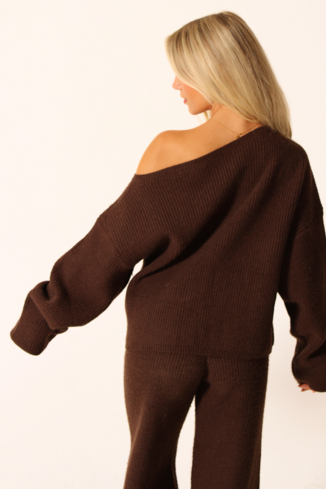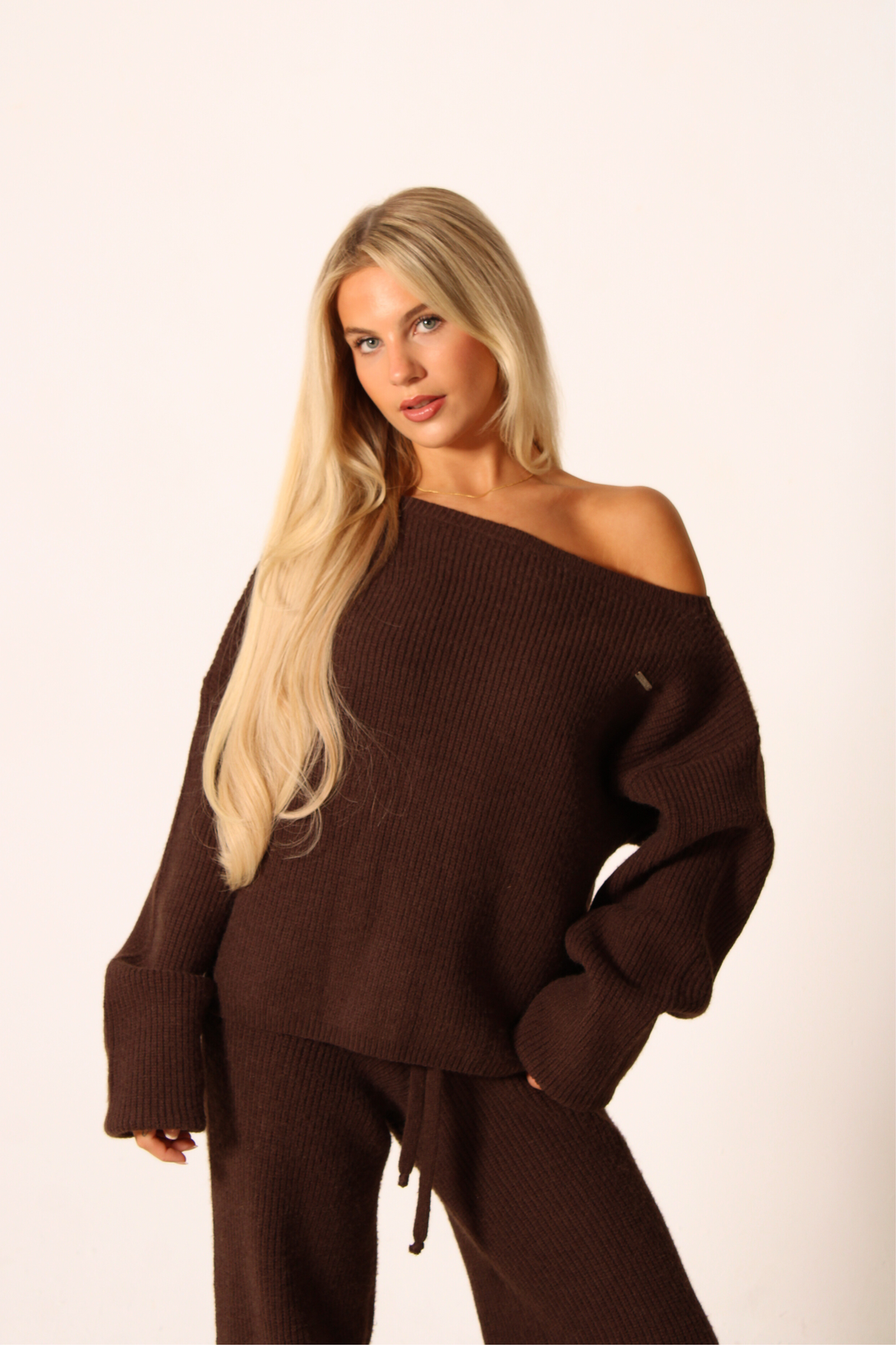 Teddy Knit Off Shoulder Knitted Jumper Brown