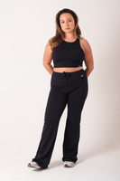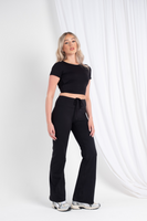 The same matte black leggings that you love, but in a flare shape. We've slightly reworked our original black leggings with a softer feel fabric, contour bum stitching and no front seam to bring you even more comfort. All of the best Sculpt features, from our best-selling matte black leggings, but in a brand new flare, and for the first time ever, available in two lengths, petite or regular.