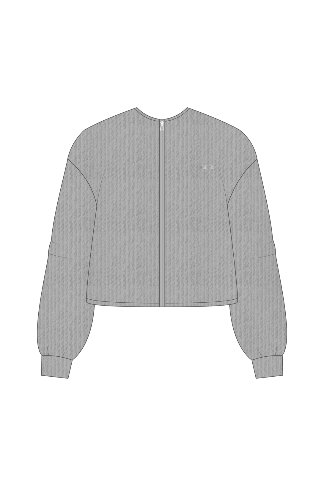 Finished with a sleek metal zip-through front, long cuffed sleeves, and a signature metal tag on the chest, this jacket brings elevated detailing to an everyday staple. Its versatile grey hue makes it easy to pair with the matching Teddy Knit High Waisted Pants or your go-to loungewear.